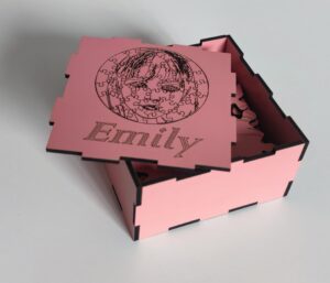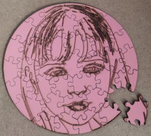 Then our artists create a sketch based on your image, like this. Then this sketch is engraved on the wooden material MDF. Then your puzzle is laser-cut. |